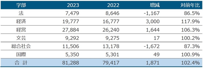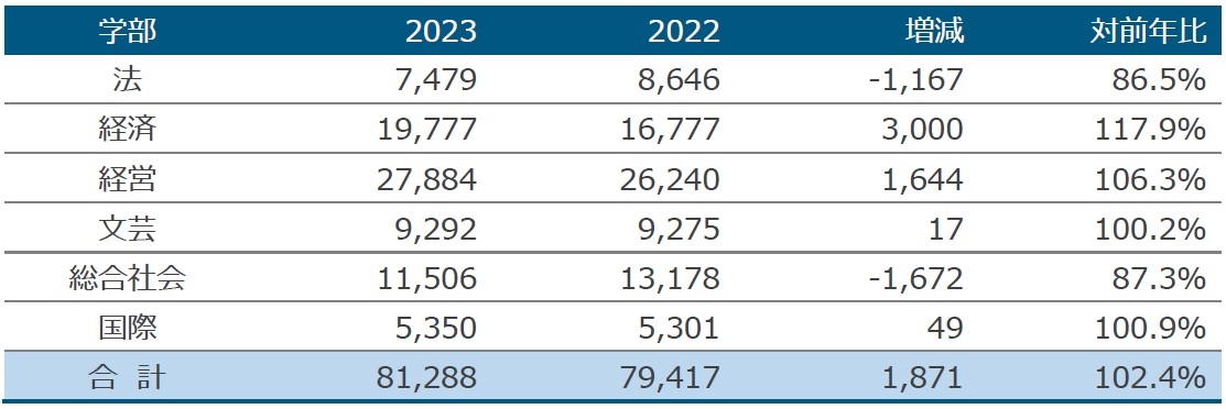 ●文系学部の志願者数は前年比102.4%に増加、理系学部は前年比91.2%に減少した