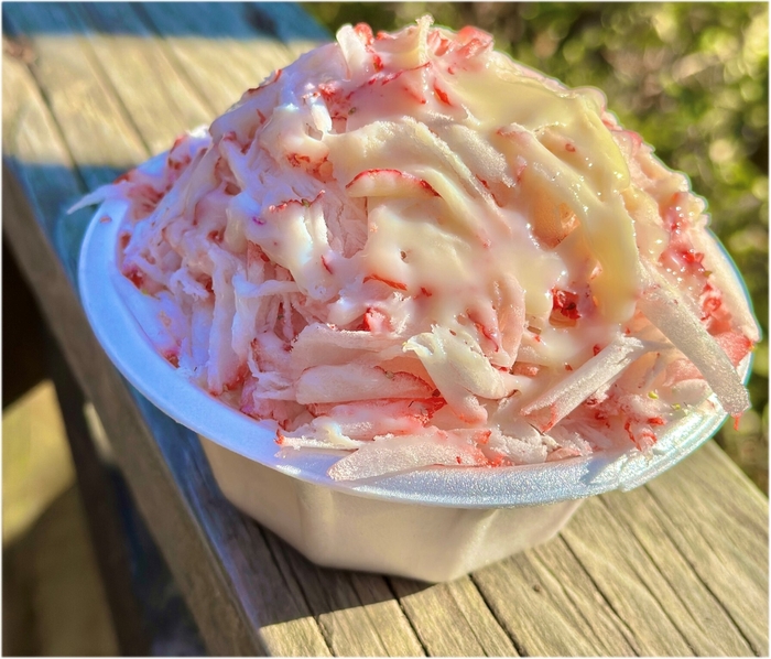 「有野実ファーム」では、11種類の食べ比べが楽しめるだけでなく、いちご本来の味を丸ごと楽しむメニュー「かきいちごおり」が人気!凍らせたいちごを繊細に削り、そのまま食べると口の中でとろけるような新食感が楽しめます。