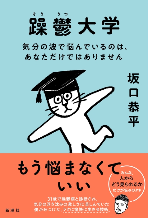 メディアプラットフォームnoteで坂口恭平さんが連載した「躁鬱大学」が、『躁鬱大学 気分の波で悩んでいるのは、あなただけではありません』として新潮社から4月28日(水)に発売されます。本書は、躁鬱病と診断された坂口さんが試行錯誤を重ねるなかで見つけた、自分や気分の浮き沈みとの付き合い方をまとめた一冊です。