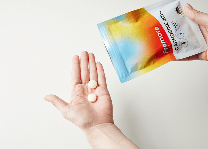「Fremore」は、注目成分カルノシンに加え、ビタミン・ミネラル・乳酸菌など8種類の成分をバランスよく配合しています。カルノシンが、毎日の活動や運動への意欲をサポートし、「今日も体を動かしたくなる」前向きな気持ちを応援します。
