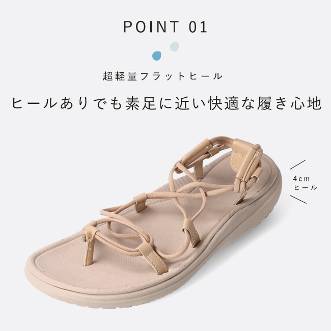 【商品情報】 軽量レースアップフラットスポーツサンダル