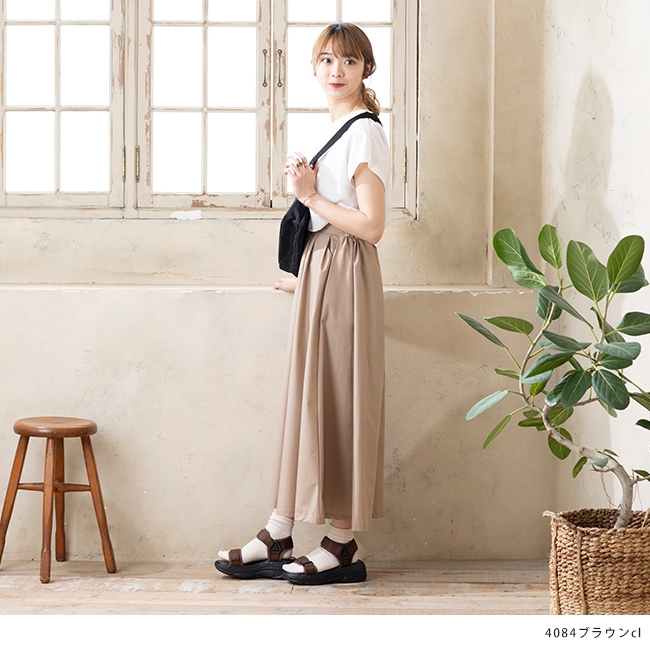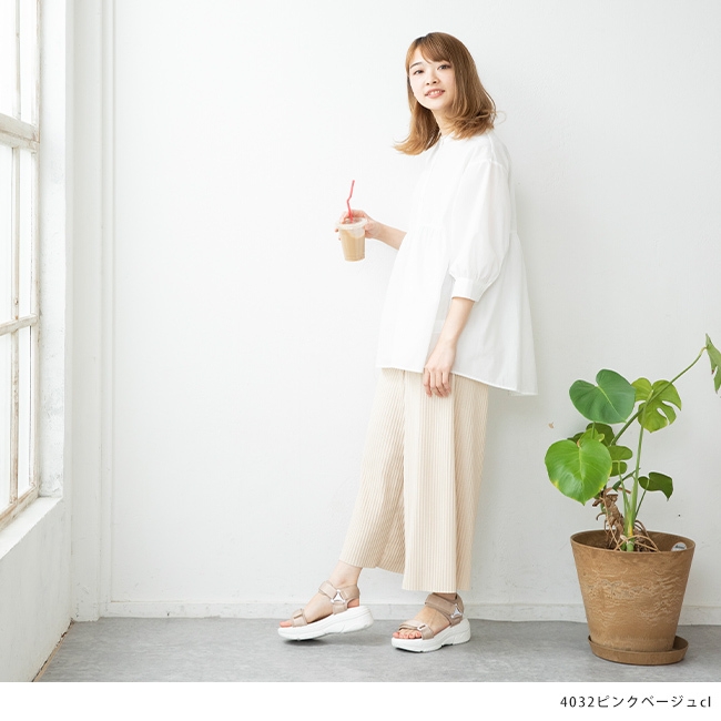 厚底アイテムの中でもシンプルなデザインで上品なカラーなので、長い丈のスカートやボトムに合わせて大人の抜け感を楽しみたいアイテムです。