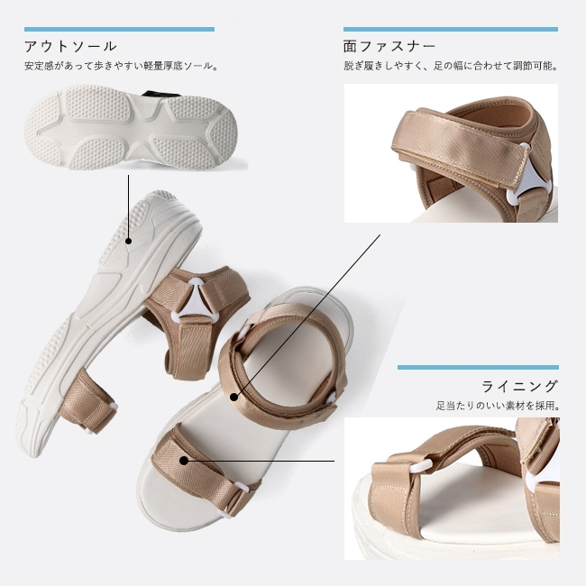 【商品情報】 面ファスナー 厚底スポーツサンダル