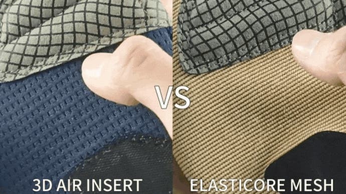 - グレー×ベージュ エラスティコア・メッシュ:通気性に優れ、スタイリッシュな差し色