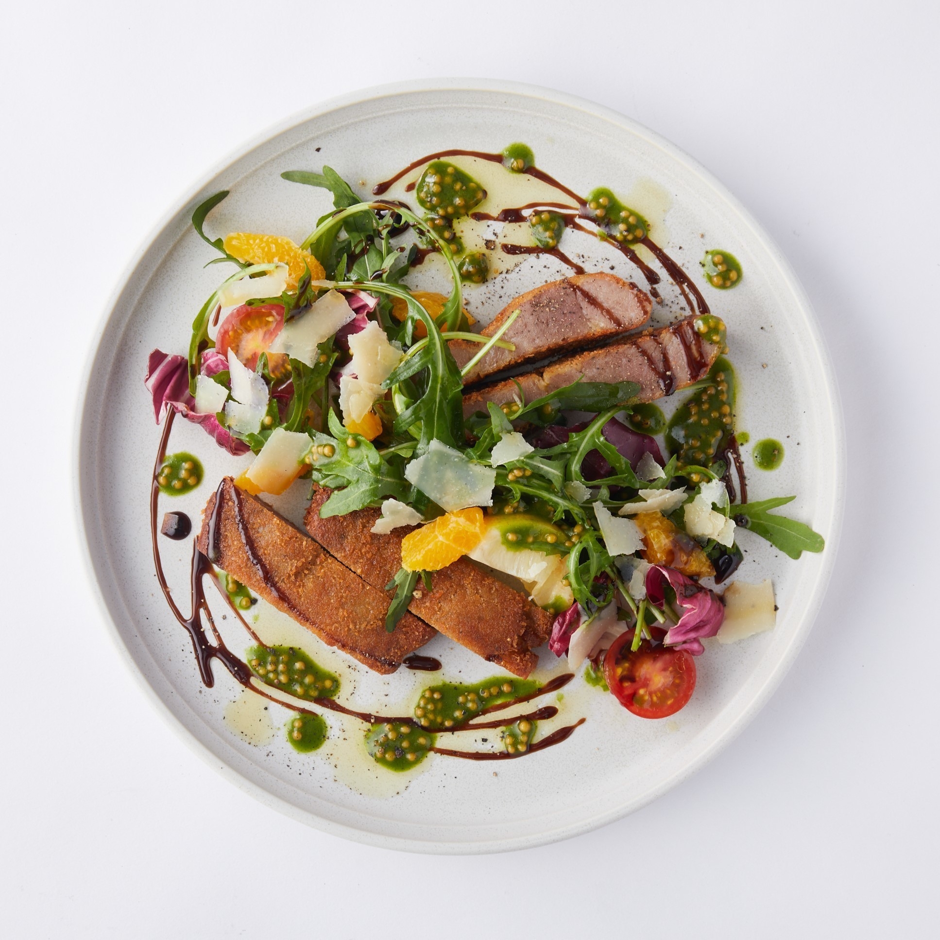「大和ポークのコトレッタ 有機ルッコラと柑橘のサラダ」2,970円(税込)