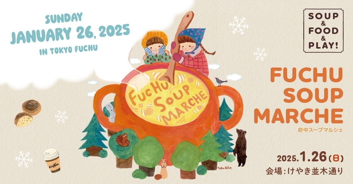 府中市とまちづくり府中(所在地:東京都府中市、代表取締役社長:槇ヶ垰俊一)は、2025年1月26日(日)に府中駅前けやき並木通りにて「FUCHU SOUP MARCHE(フチュウ スープマルシェ)」を開催します。
