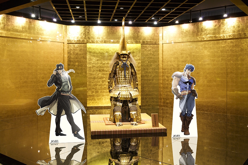 本店 箔巧館では地下1階から2階の各所に、6人のキャラクターのスタンディを設置。写真スポットをご用意いたします。(兼六園店ではジョルノ・ジョバァーナ、東山店では空条承太郎、空条徐倫のスタンディのみ設置)