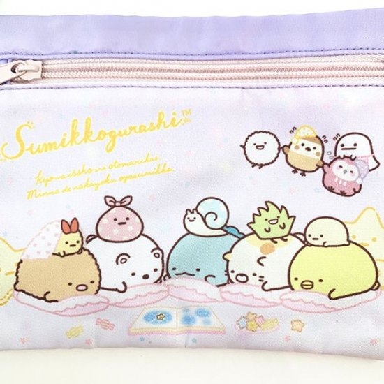 フカフカの枕とお菓子を持ち寄ってお泊り会を楽しむすみっコたちがかわいいデザイン。色はゆめかわなパープルです♡