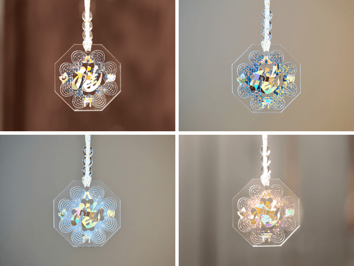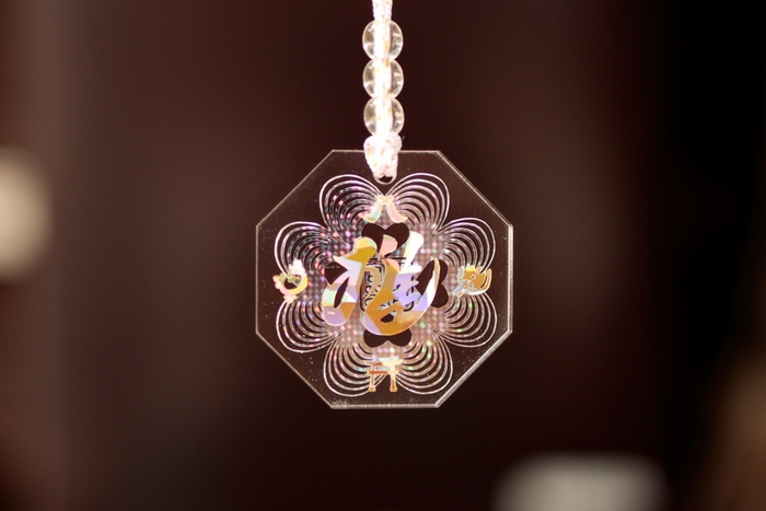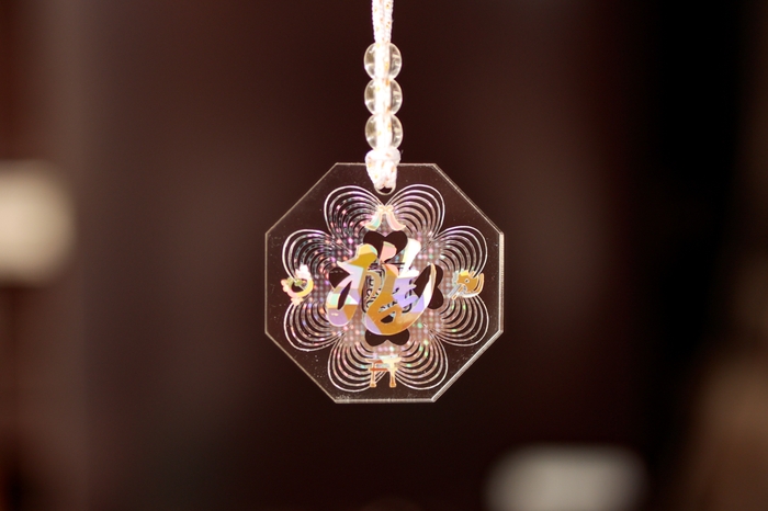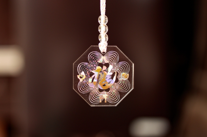 そして、御守本体には特殊な光沢のあるホログラム箔を使用し、光を受けてきらめく表現となっています。