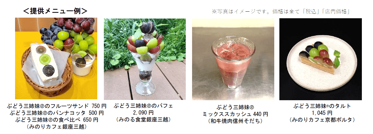 JA全農は、全国の直営飲食店舗(4店舗)で、9月26日(金)~10月7日(火)の間、「長野県産ぶどう三姉妹🄬フェア」を開催します。