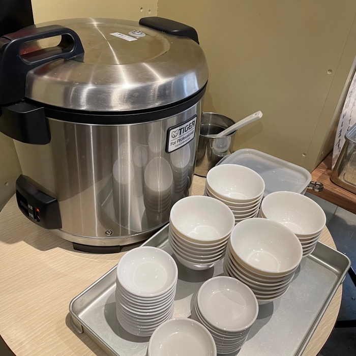 この新しいラーメンの特徴は、そのユニークな組み合わせとボリュームです。メニューは「ラーメン」一択で、価格は999円。このラーメンには、麺300g、肉100g、もやし200gが含まれ、さらにご飯はセルフ盛り放題で、生卵が付いてきます。