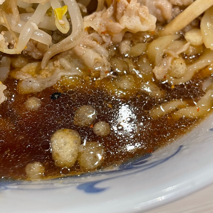 具の豚バラともやしの組み合わせは、柔らかく一気にむしゃむしゃと食べられます。麺、スープ、具、それぞれが絶妙に調整されて、あっという間に完食できる旨さが楽しめます。