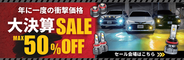 今回のセールでは、日本最大級の自動車SNS「みんカラ」のパーツオブザイヤーで7年連続上位入賞、4年連続年間大賞を受賞している当社の人気No.1シリーズ「カラーチェンジLEDフォグランプ」など、エフシーエルの主力商品が最大50%OFFとなります。