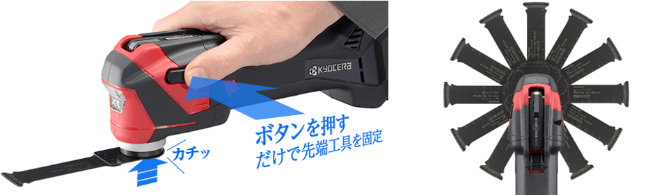 先端工具(ブレード)はワンタッチで素早く交換が可能