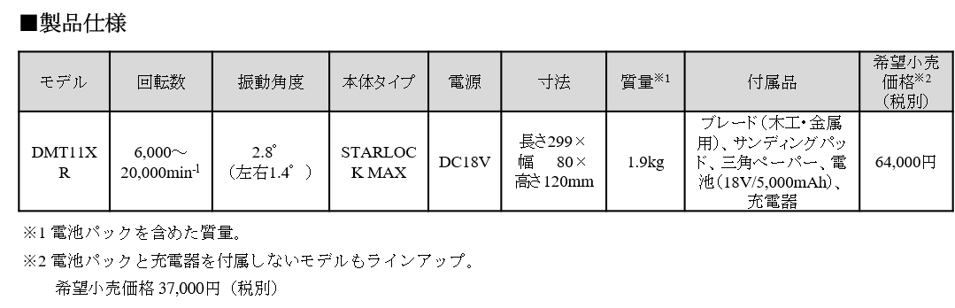 プロ向け充電式マルチツール「DMT11XR」を発売