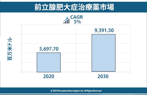 調査会社Panorama Data Insights】の最新総合調査により、世界の前立腺肥大症(BPH)治療薬市場の著しい成長が明らかになった。年平均成長率(CAGR)は5%で、市場規模は2020年の56億9,770万米ドルから2030年には93億9,150万米ドルに拡大すると予測されている。この成長は、高齢化する男性人口の間でBPHの有病率が世界的に上昇し、効果的な治療法に対する需要が高まっていることを裏付けている。
