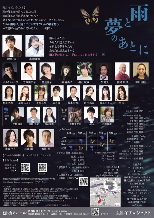 Yプロジェクト主催、『雨と夢のあとに』が2023年8月16日 (水) ~2023年8月20日 (日)に渋谷区文化総合センター大和田 伝承ホール(東京都渋谷区桜丘町23-21)にて上演されます。