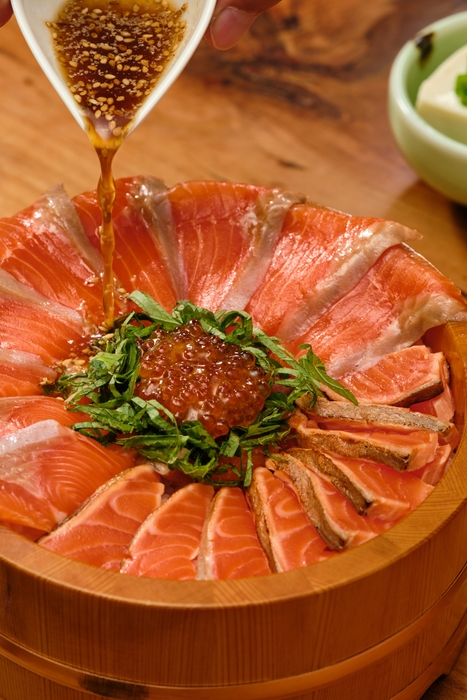 (4)ふくいサーモン丼 価格:並盛1,800円 大盛2,700円(税込)