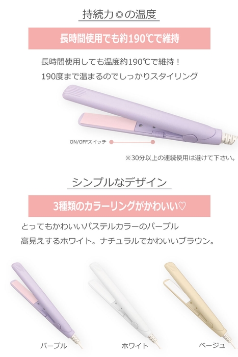 ポイント3:約190℃の高温でしっかりスタイリング!しかも長時間使える!