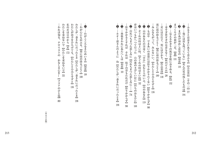 印象的なフレーズで詩を探すことができる「くちずさみ索引」付き