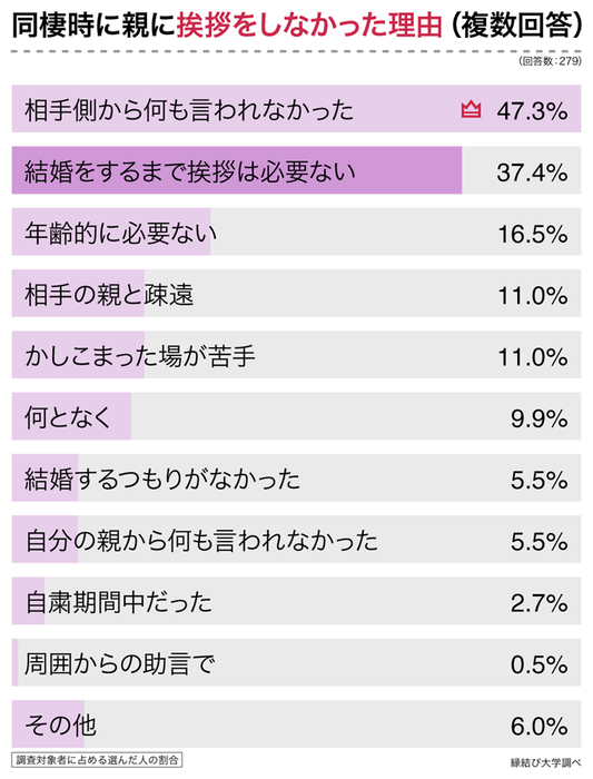 同棲前に挨拶をしているカップルは半数未満