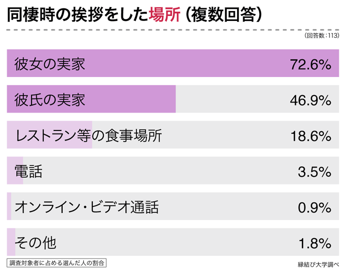 挨拶の場所は「彼女の実家」が72.6%と最多