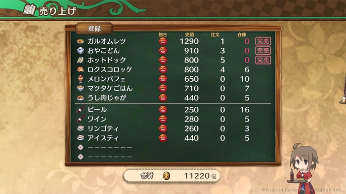 仲間のレベルアップがしやすくなる新システム「賄い料理」を実装しました。料理を作った際に手に入るポイントで、仲間たちに特製の料理を作ることができます。また、お店に登録するメニューは「食べ物」と「飲み物」を別枠化し、お店に出すメニューをより細かく設定できるようになりました。