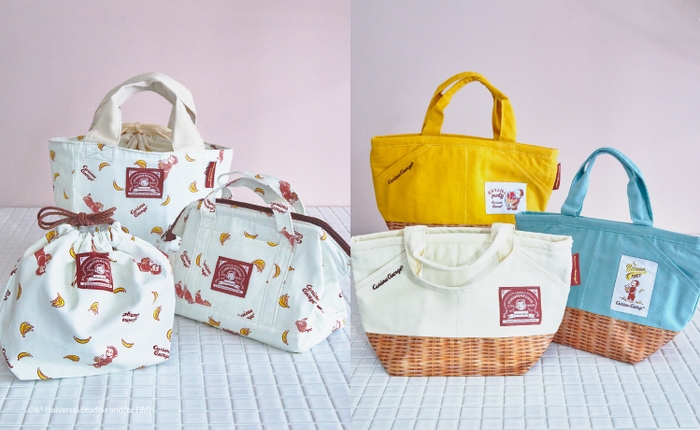 使いやすいサイズのランチボックスは、テーマの「Banana Party」ロゴとご機嫌なジョージをプリントし、スプーンとお箸が一緒になったコンビセットもお揃いでご用意しています。また、木蓋が可愛らしいオーバル型のランチボックスも登場!底面にもジョージのプリントがあり、お弁当を詰めるときも、食べ終わった後も楽しめます。ランチバッグ類は保冷機能を兼ね備え、大人でも持ちやすいシンプルなデザインに仕上げています。