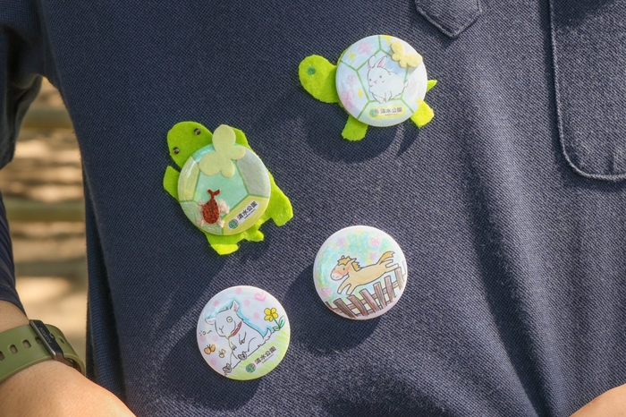 色鉛筆で色塗りやお絵かきをしたり、チョウやカブトムシの形をしたフェルトを貼ったりなど簡単な工作でオリジナル缶バッジや缶マグネットを作成出来ます。(フェルト貼りはマグネットのみ)