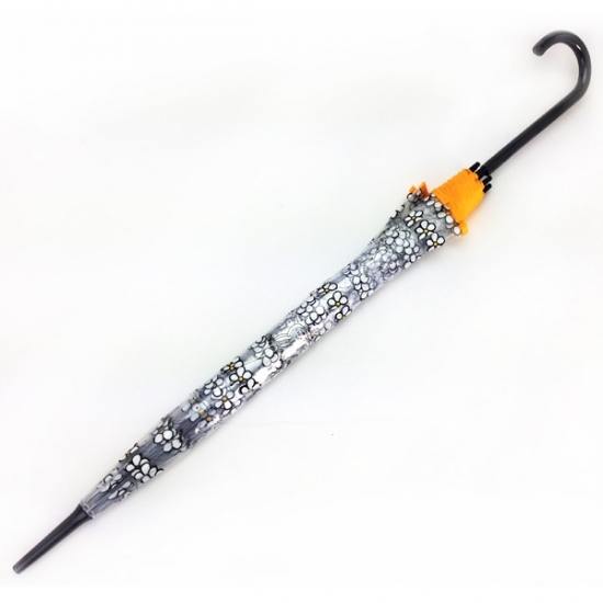 こちらは、透明タイプのジャンプ傘です。サイズは55cm。お花が散りばめられたデザインはとってもキュートです♡縁取りのイエローもオシャレ♪