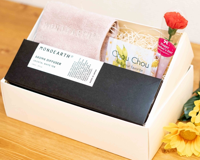 開封した瞬間のサプライズとカーネーションの香りが特別感をより演出します。