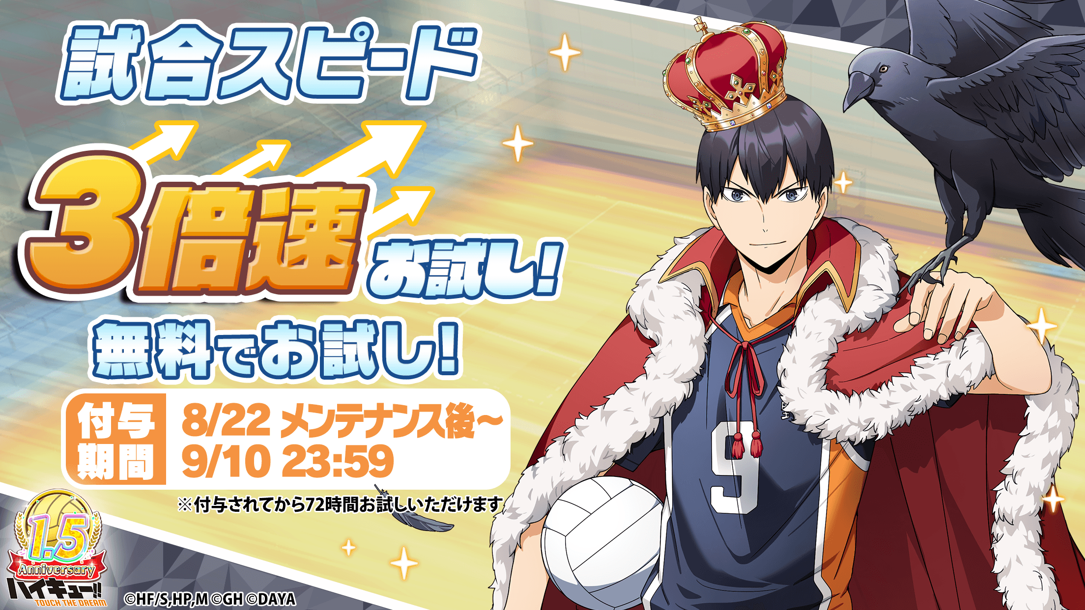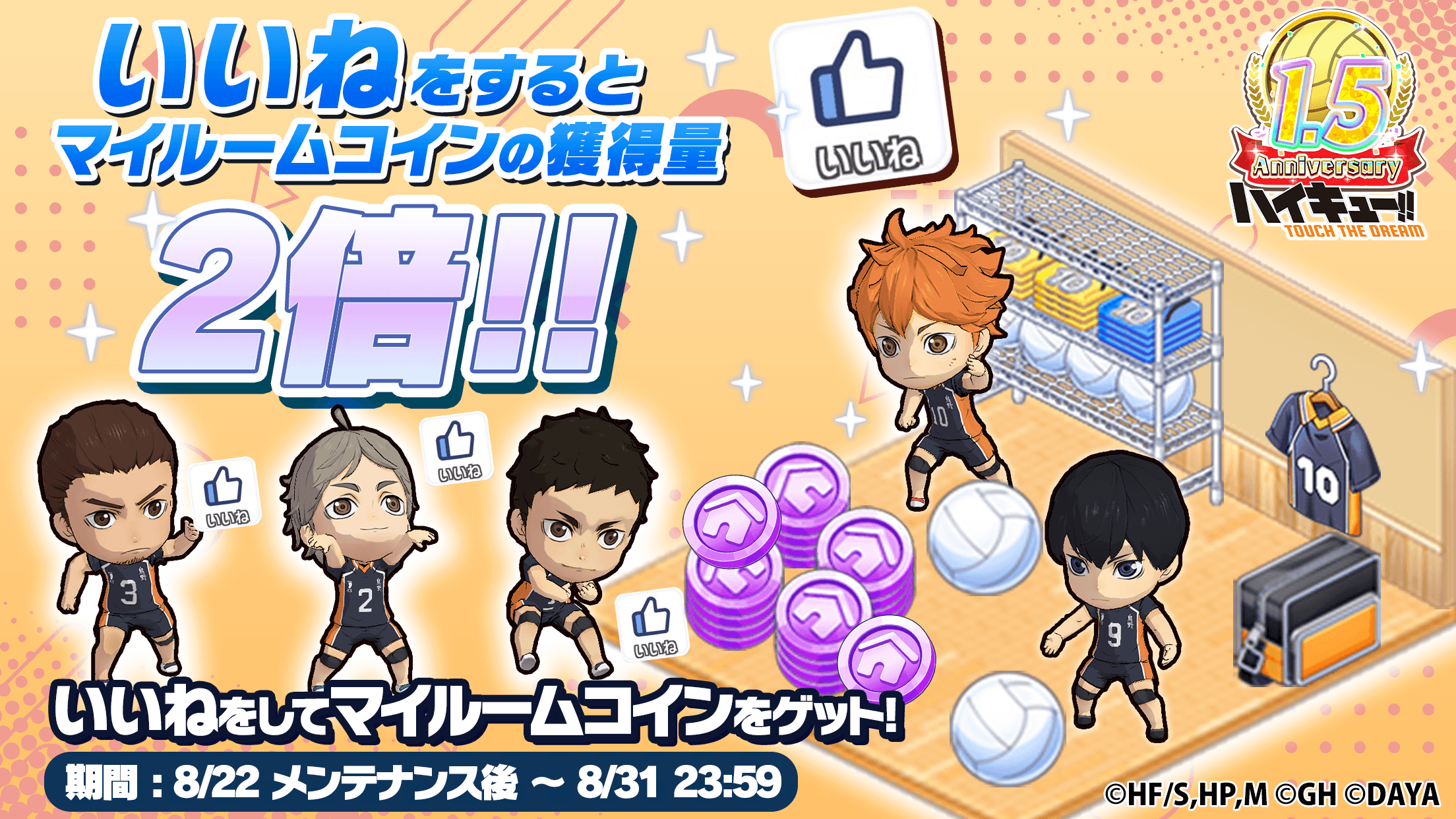 スマホゲーム『ハイキュー!! TOUCH THE DREAM』 1.5周年を記念して8月22日(木)から1.5周年キャンペーン開催 ~第3回「マネージャーの部屋」実施~