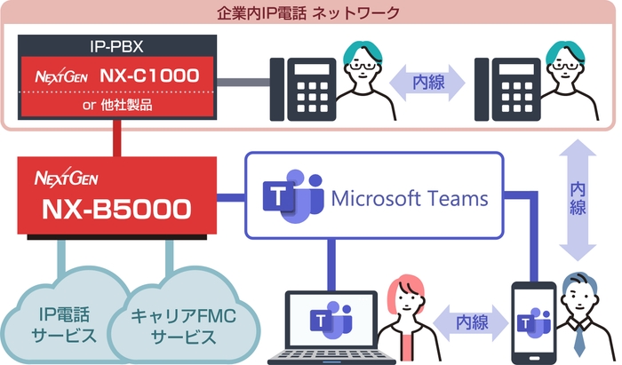 このたびの認定取得により「NX-B5000」は「Microsoft Teams」と連携し、既存の電話回線や電話番号を変更することなく、「Microsoft Teams」から外線および内線の音声通話が、通信キャリアの固定電話・携帯電話・IP電話サービスを使用して、シームレスに発着信することが可能となります。