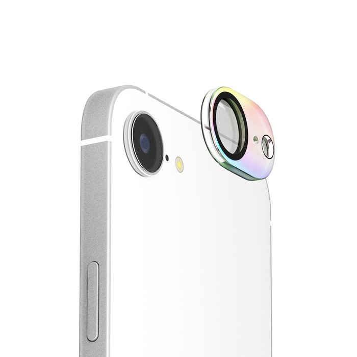色鮮やかなカメラレンズのフチが特徴的なiPhone 16e対応カメラレンズプロテクターです。