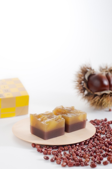北海道産小豆のこし餡羊羹に、栗の甘露煮を入れた栗羊羹を重ねた逸品。
