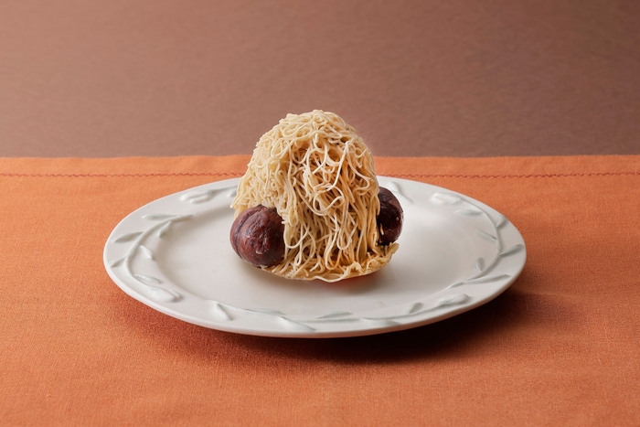 「しまんと地栗」のペーストを1mmの極細でたっぷり絞った特別なモンブラン。 仕上げに栗の渋皮煮を半分にカットして、両サイドにトッピング。