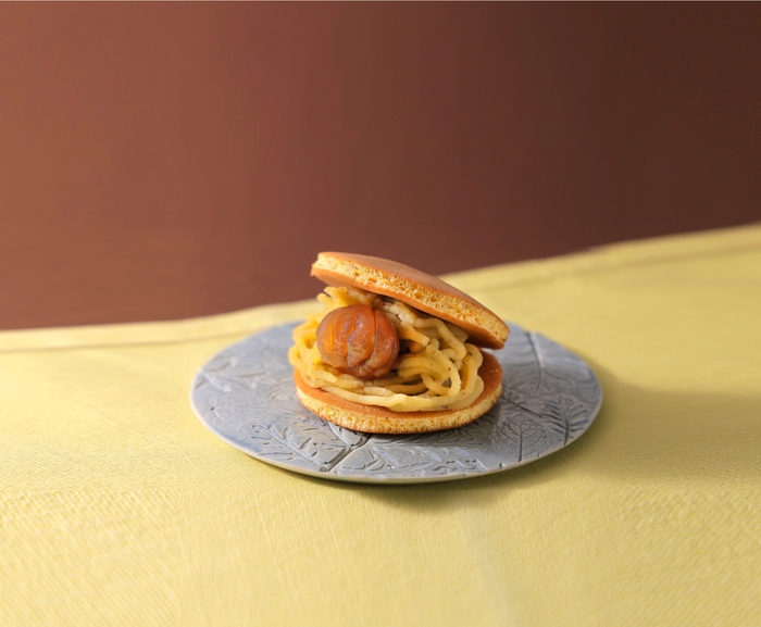 ラム酒を加えた和栗ペーストのモンブランと、マロングラッセをどら焼きでサンド。