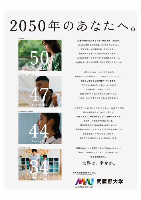 ●特設サイト「2050年のあなたへ。」:https://www.musashino-u.ac.jp/guide/profile/brand/2050/