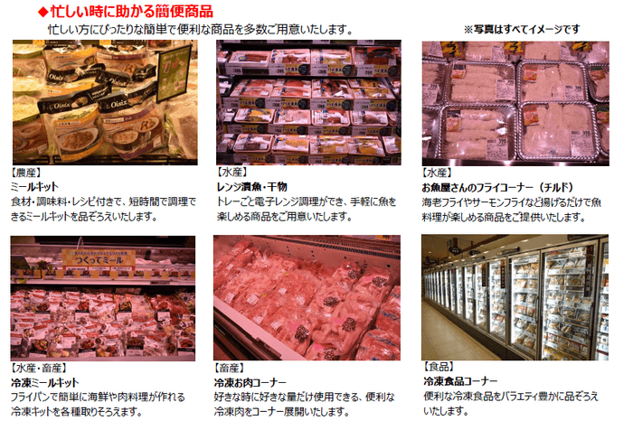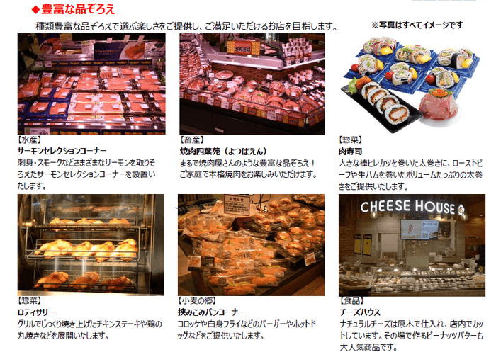 毎日の暮らしに買い物の楽しさと便利さを提供し、食卓が豊かになるお手伝いができる温かい雰囲気のお店を目指します。