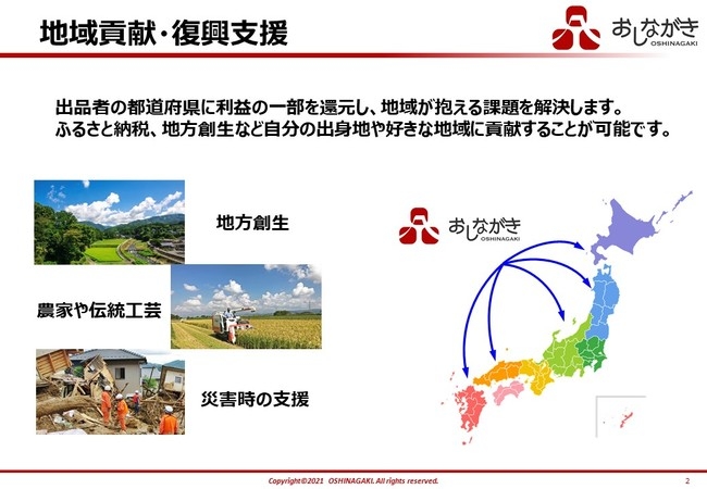 「おしながき」は、利益の一部を地域に還元することにより、商品を購入することで、ふるさとや好きな地域を応援することが可能です。