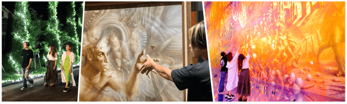 通常の営業時間中では観る事の出来ないグランピング宿泊者だけが楽しめるナイトミュージアム。グランピングサイトから美術館までのイルミネーション。