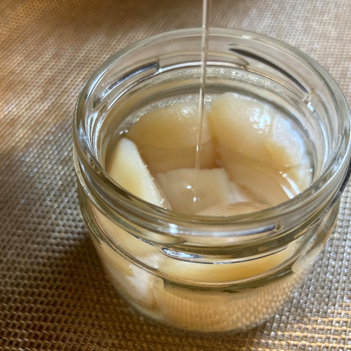 2.帆立貝柱が完全にかぶるまでサラダ油を注ぎ、蓋をして冷蔵庫で約4日寝かせる。