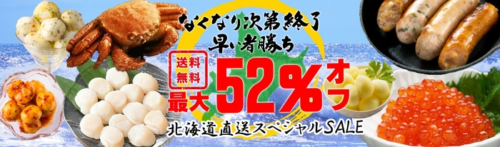 毛ガニ・ホタテ・イクラの海産物セットをオンライン北海道物産展で50%OFF・送料無料のスペシャルセール実施中