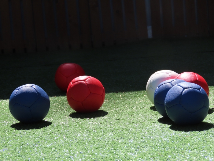 ジャックボールと呼ばれる白い球に、赤・青それぞれの色のボールを複数回投げて近づけ、ゲーム終了時に自分のチームの色のボールをより多く近づけられたほうが勝つというシンプルなルールで、年齢や性別、障がいのあるなしに関わらず、みんなで楽しめるスポーツです。
