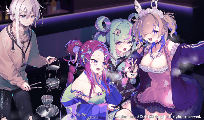 『Hookah Haze』は、株式会社アニプレックス(本社:東京都千代田区 代表取締役 岩上敦宏 以下アニプレックス)が販売、株式会社アクワイア(本社:東京都千代田区 代表取締役 遠藤琢磨 以下アクワイア)が企画・開発を手掛けるSteam🄬・Nintendo Switch™向けゲームです。プレイヤーは主人公・『炭木トオル』としてシーシャ屋を経営することになります。そこで、3人の女性と出会い、シーシャを提供する中で彼女たちの本心に触れていきます。