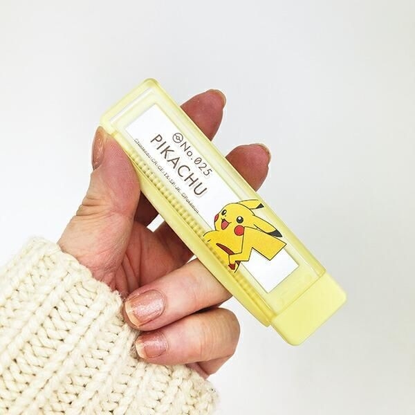 振り向き姿の愛らしいピカチュウのイラストに、ポケモン図鑑ナンバーと名前が描かれたシンプルなデザイン。全体的にパッと目を引くイエローが、目にする度に元気をくれます。