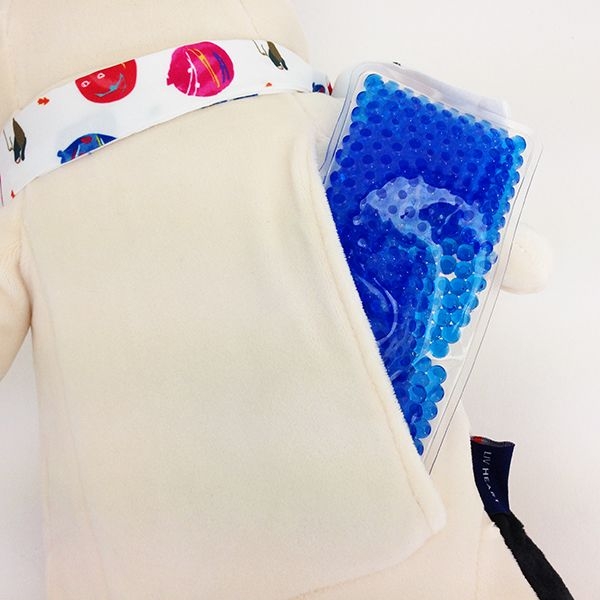 お腹のポケットにクールジェルを入れられるこのシリーズは、45x12x12cmと愛でるのにちょうどいいサイズ感。暑いときにはコタロウとひんやりまったり過ごしたいですね♪