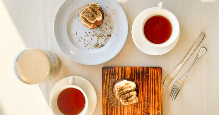 セイロンティー(紅茶)との相性がおすすめの「酒粕チーズクリームを添えたほうじ茶マフィン」。