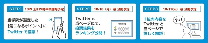 本試験で気になったポイントをTwitterで受験生が投票、翌10日(月)に投票結果をランキング形式で公開、11日(火)に投票結果をうけて当学院がコメントを公開いたします。 試験終了後に受験生が抱えるモヤモヤした気持ちを当学院がスッキリ解決します!