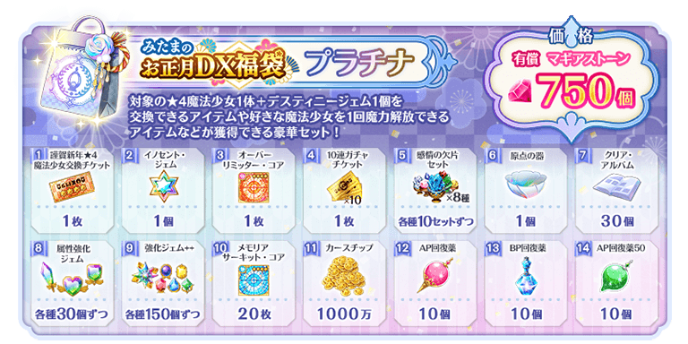 有償マギアストーンのみで購入できる特別なアイテムセットと無償を含むマギアストーンで購入できる特別なアイテムセットを販売いたします。